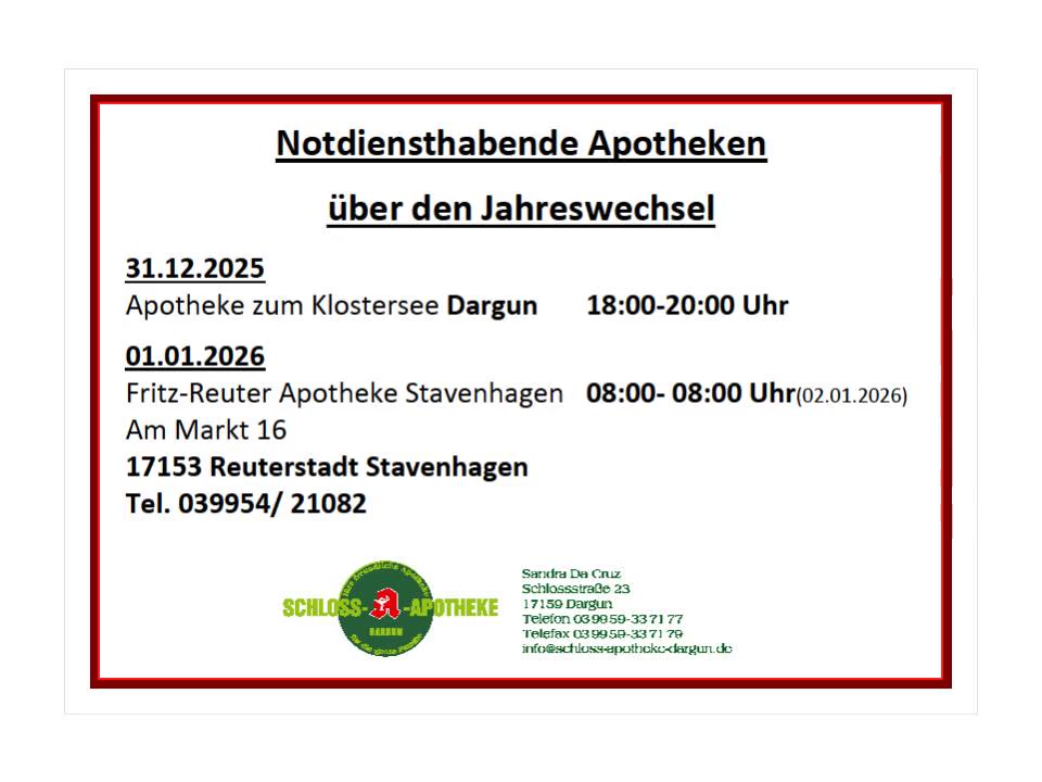 Ab 01.01.2026 gibt es eine NEUE NOTDIENSTREGELUNG für die Apotheken in MV.